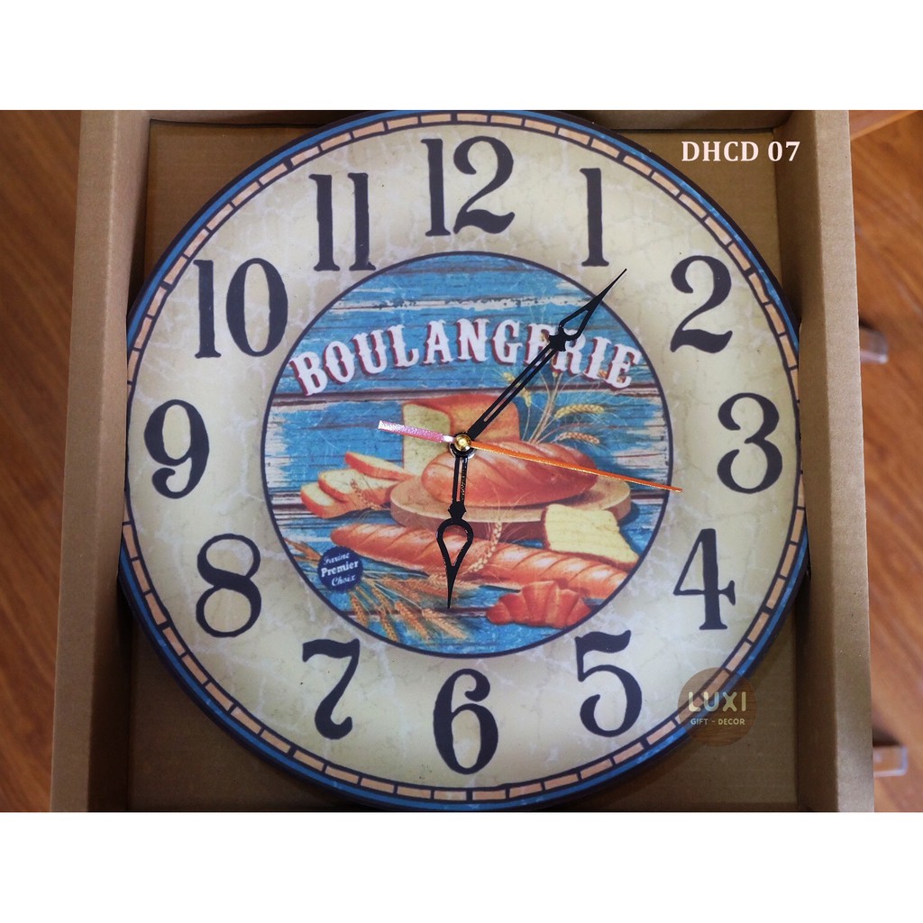 - Đồng hồ vintage họa tiết nghệ thuật thiết kế hình tròn đơn giản, phù hợp với nhiều không gian như: trang trí cho bếp ăn, nhà hàng, bar club, bakery shop, wine store...- Chất liệu: fly wood