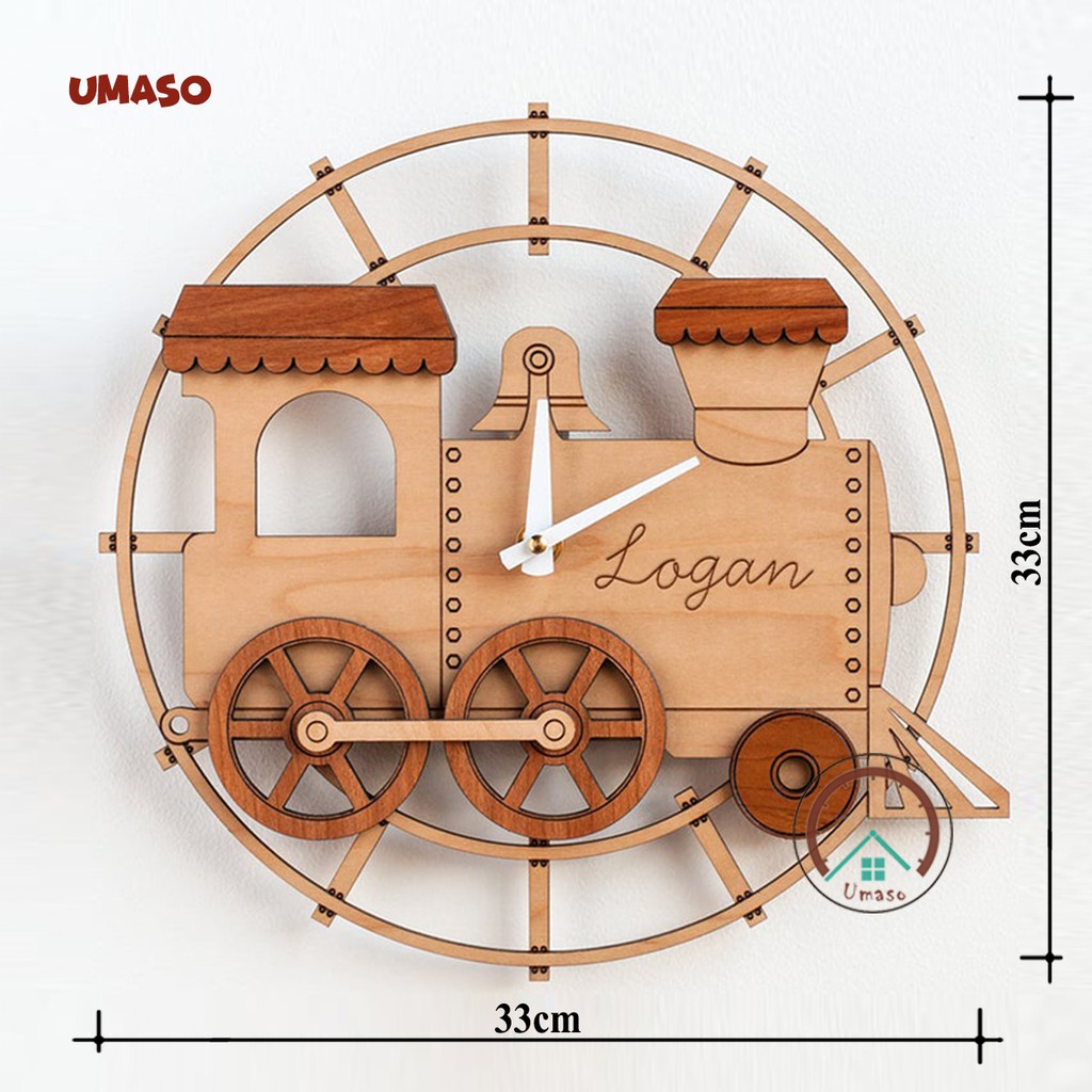 Đồng hồ vintage treo tường đẹp hình xe lửa UMASO [ Tặng kèm móc treo và Pin]