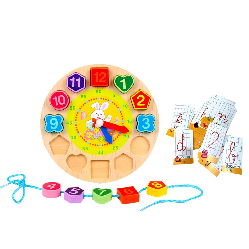 Đồng Hồ Xâu Dây Bằng Gỗ Phân Biệt Màu Sắc Và Hình Khối