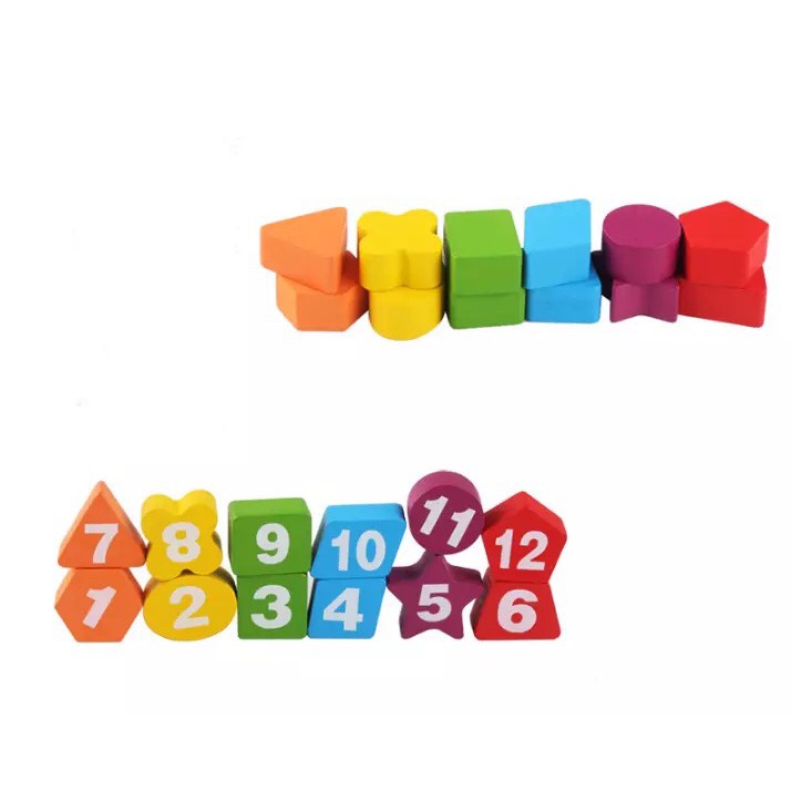 Hình dạng và kích thước khác nhau của từng khối hình giúp bé sờ, cảm nhận và học nhận biết các con số và hình học đơn giản, đồng thời giúp bé phát triển sự phối hợp tay - mắt và kỹ năng khéo léo khi luồn dây, xâu hạt.