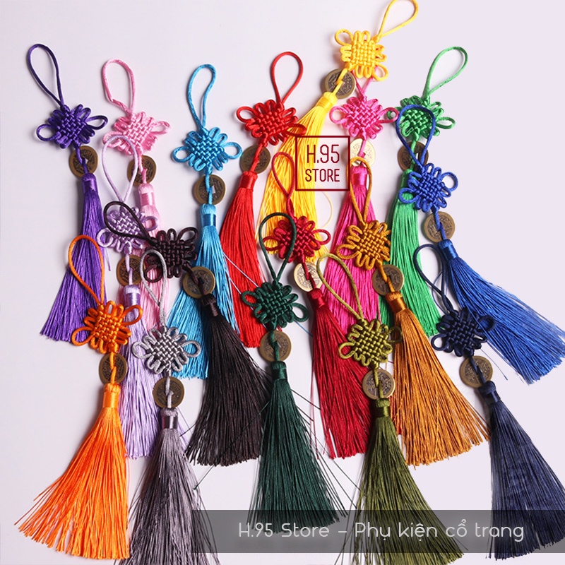 - Chất liệu: Tua rua làm bằng chỉ polyester, đồng xu hợp kim giả đồng cổ