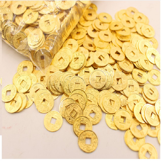 Giới thiệu Đồng xu vàng/ kẽm 2.35cm(combo từ 10 xu) - chiêu tài lộc, trang trí.