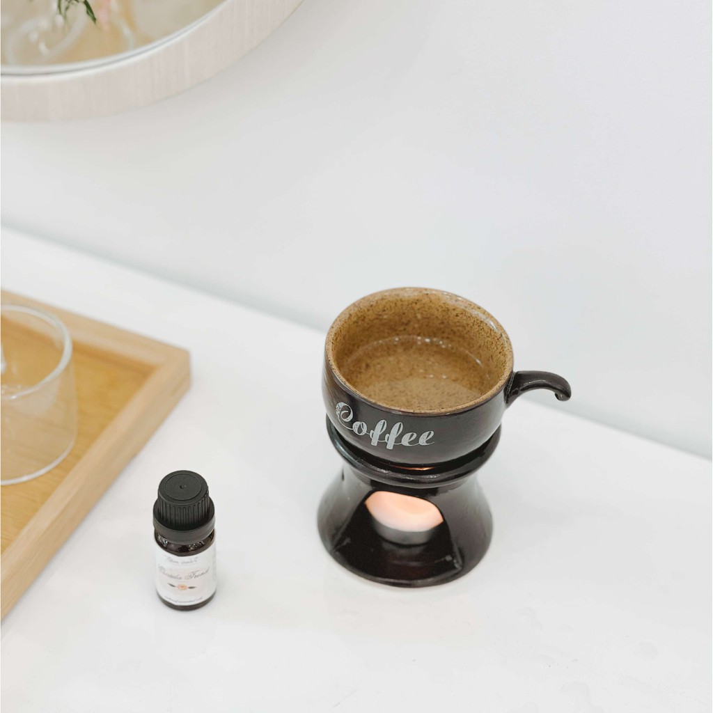 (*) Bạn sẽ đặt nến viên phía dưới, bên trên cho 1 ít nước và nhỏ tinh dầu vào. Sẽ toả hương thơm nhẹ bạn nhé🥰