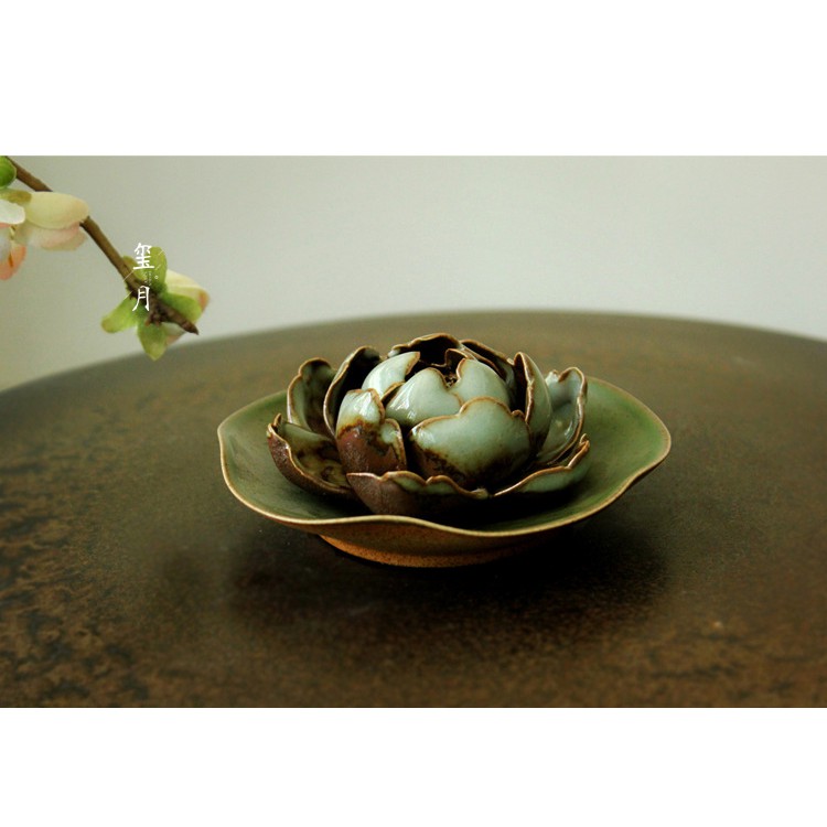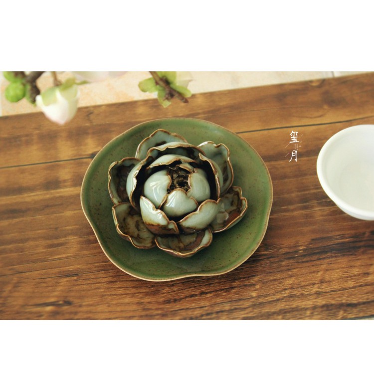 Nhà cửa & Đời sống > Bộ đồ bàn ăn > Dĩa || Đốt trầm hoa mẫu đơn bằng gốm kèm đĩa DDT28 Song An EcoCòn hàng