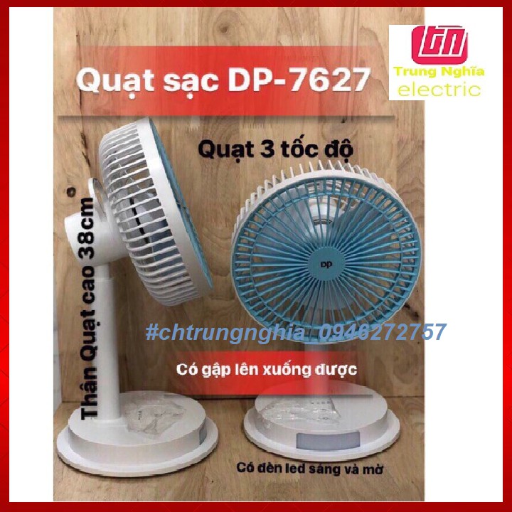 -Để áp ứng nhu cầu cần làm mát ,cần ánh sáng của mọi người khi đi du lịch,dã ngoại,cấm trại hay những khi cúp điện,.. shop đã tìm ra 1 sản phẩm mà đáp ứng đến 2 nhu cầu của khách hàng đó là Quạt tích điện kết hơp đèn DP-7627.