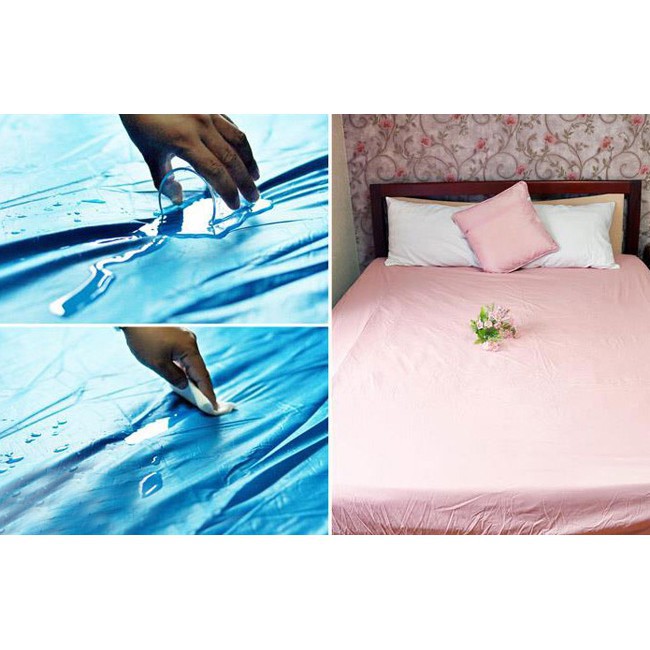 - Chất liệu chống thấm 100%, không gây tiếng động sột soạt khi di chuyển trên giường.