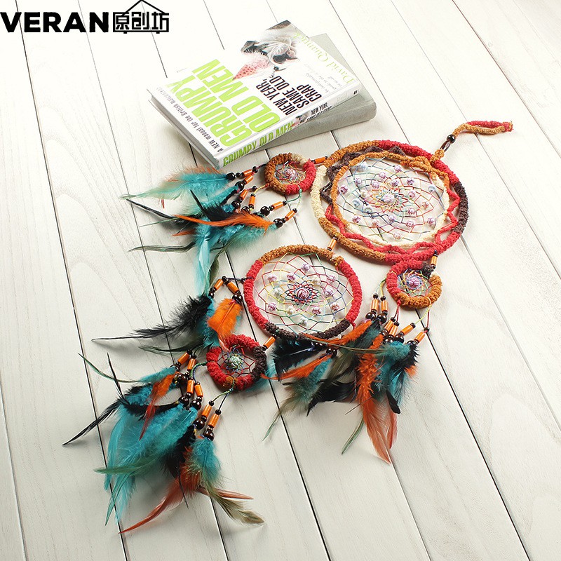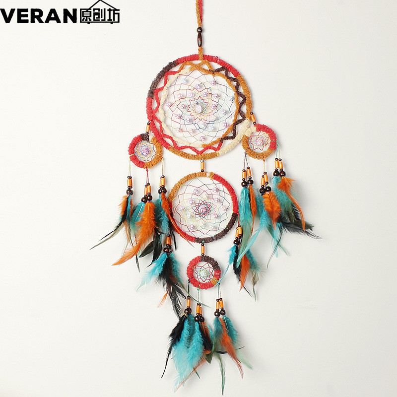 Giới thiệu Dreamcatcher boho đỏ cam có lông vũ treo tường trang trí, decor homestay - Handmade Dreamcatcher Decoration