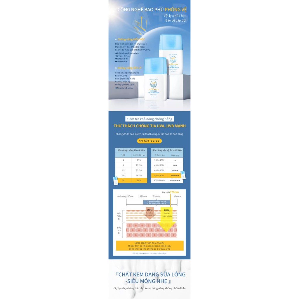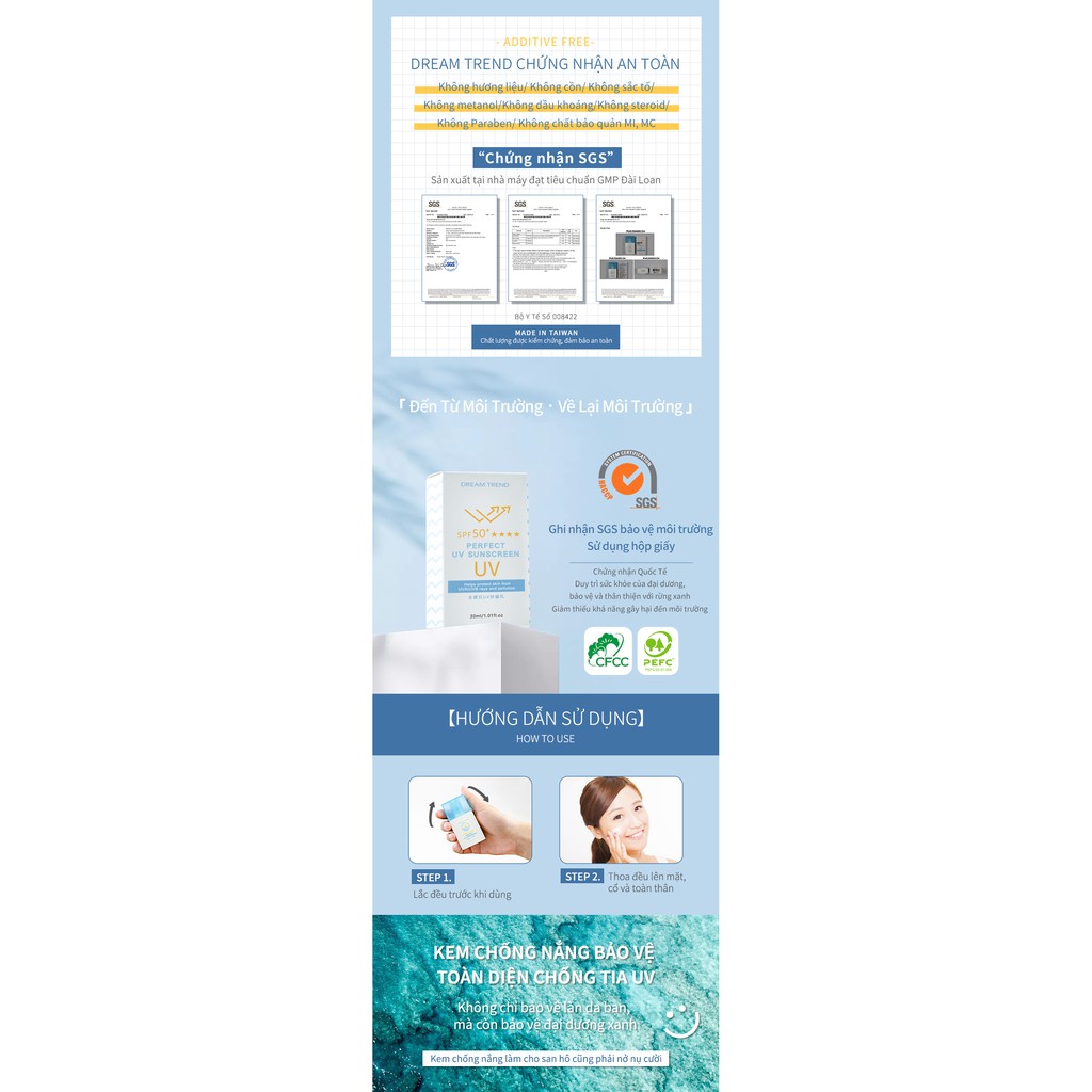 Giới thiệu DREAMTREND KEM CHỐNG NẮNG BẢO VỆ TOÀN DIỆN CHỐNG TIA UV SPF 50+【THÂN THIỆN VỚI ĐẠI DƯƠNG】