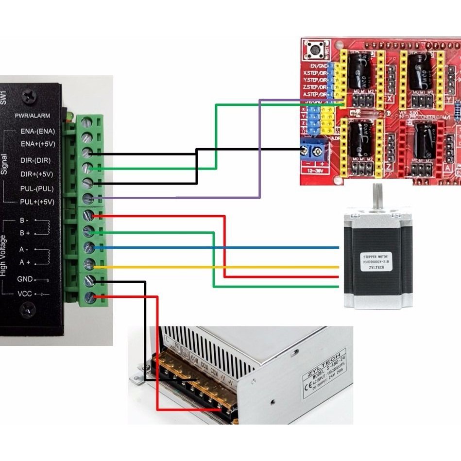 A+ và A -: Nối vào cặp cuộn dây của động cơ bước