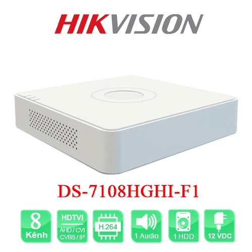 Đầu ghi hình TURBO HD 3.0 Hikvision DS-7108HGHI-F1 hình ảnh sắc nét với chuẩn nén H.264+ tiết kiệm 50% dung lượng lưu trữ giúp làm giảm thiểu băng thông mạng giúp cho tốc độ truyền tải dữ liệu qua mạng nhanh hơn, hỗ trợ HDMI, VGA, hỗ trợ 1 ổ cứng SATA x 6TB.Thông số kỹ thuật đầu ghi hình HDTVI Hikvision DS-7108HGHI-F1