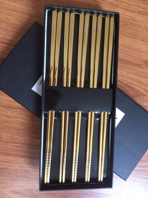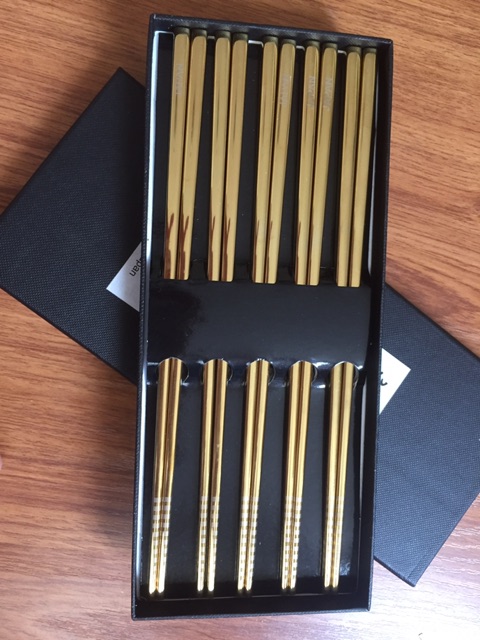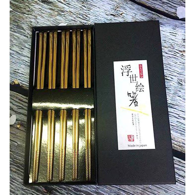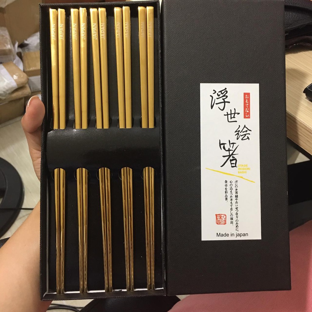 Set 5 đũa inox 304 đặc ruột Made in Japan mà màu đồng và ánh hồng rất sang trọng, thích hợp dùng làm đũa ăn cơm hàng ngày trong gia đình, nhà hàng khách sạn. Hàng sản xuất tại Nhật Bản- Có 2 màu: màu đồng và màu trắng