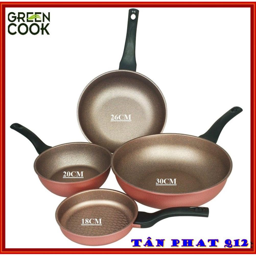 Giới thiệu [ĐỦ SIZE] CHẢO ĐÚC VÂN ĐÁ ĐÁY TỪ chống dính 7 lớp GREENCOOK (màu hồng siêu xinh)