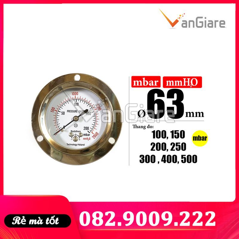 [Đủ size, hàng chuẩn] Đồng hồ đo áp suất thấp mbar, dùng cho khí, gas, chân ngang, Badotherm