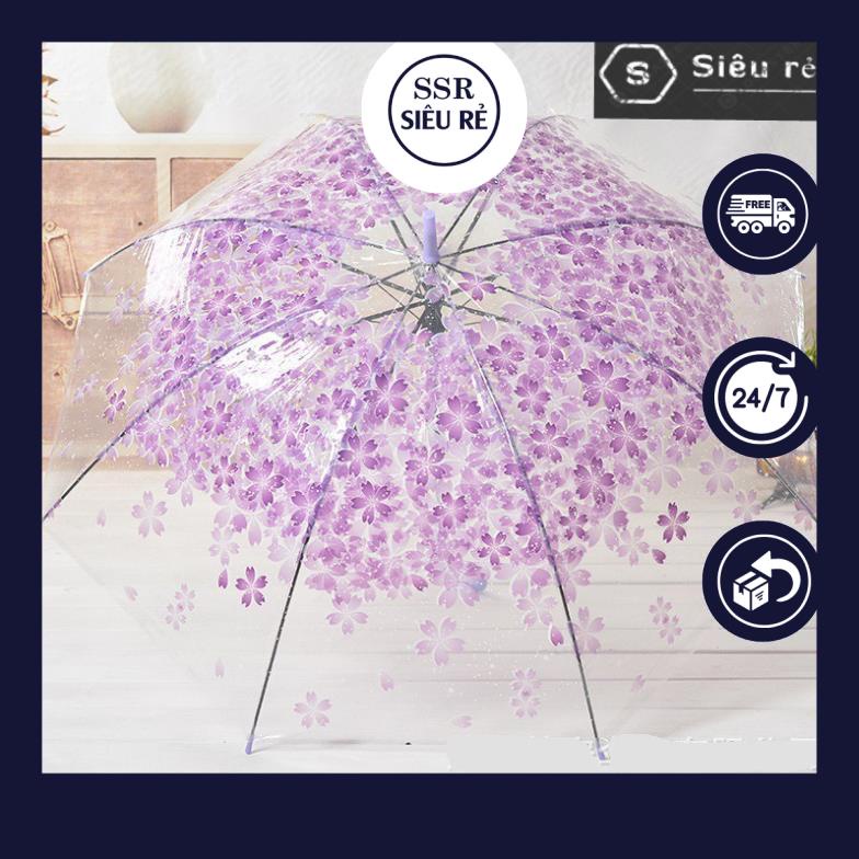 Ô trong suốt in hình hoa anh đào, giá siêu rẻ, chất liệu nhưa trong suốt, bên trong vẫn có thể thấy được hoạ tiết hoa bên ngoài