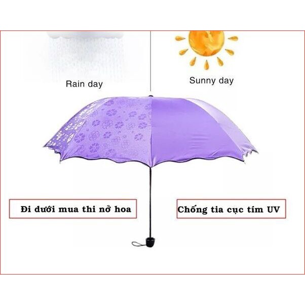 DÙ XẾP GỌN CẦM TAY CHE NẮNG MƯA THỜI TRANG THIẾT KẾ ĐẶC BIỆT NỞ HOA KHI GẶP NƯỚC, CHẤT LIỆU CAO CẤP CÓ DÂY TREO TIỆN LỢI- Chiếc ô gấp thiết kế đặc biệt xuất hiện hình các bông hoa xinh xinh khi gặp nước