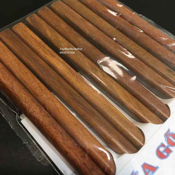 Đũa ăn cơm bằng gỗ được sản xuất bằng gỗ CẨM HỒNG. Gỗ cẩm hồng là loại gỗ cẩm nhập từ Nam Phi , có tính chất và độ cứng gần giống Cẩm Lai của Việt Nam nhưng do trồng nhiều nên có giá mềm hơn gỗ Cẩm Lai Việt Nam.* Sản phẩm có độ hoàn thiện cao nên không bị dăm và xước .