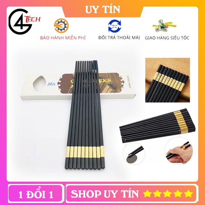 Đũa ăn mạ vàng hợp kim cao cấp bộ 10 đôi chống mốc tuyệt đối