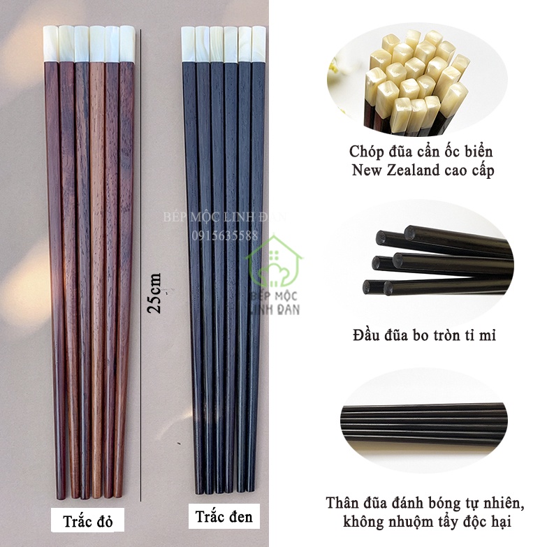 Giới thiệu [Mã BMBAU50 giảm 10% đơn 99k] Đũa cao cấp - Gỗ trắc đầu cẩn ốc biển New Zealand_Hàng VIP_Bộ 05 đôi vuông (CTL711TV-05)
