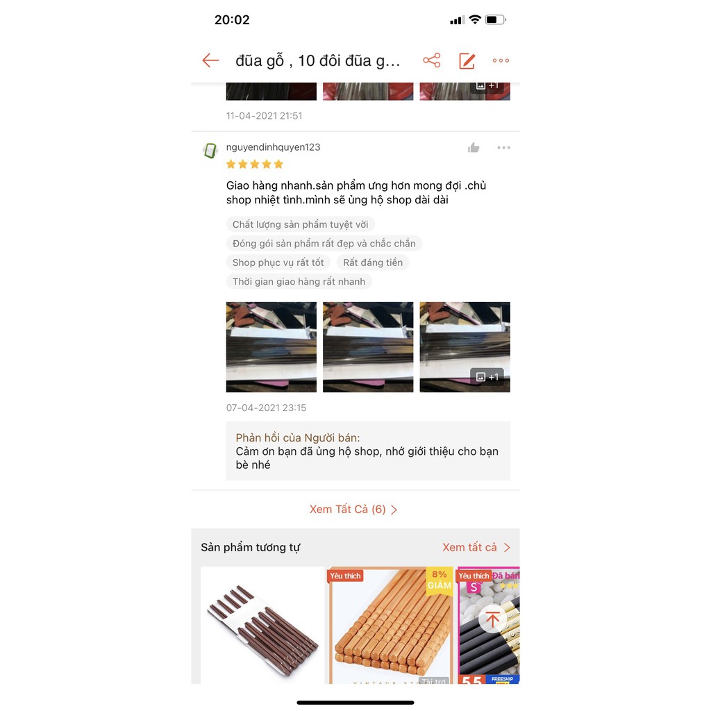 Nhà cửa & Đời sống > Bộ đồ bàn ăn > Bộ dao kéo || đũa gỗ , 10 đôi đũa gỗ trắc cao cấp hàng được làm thủ công nên an toàn cho sức khỏe mọi ngườiCòn hàng