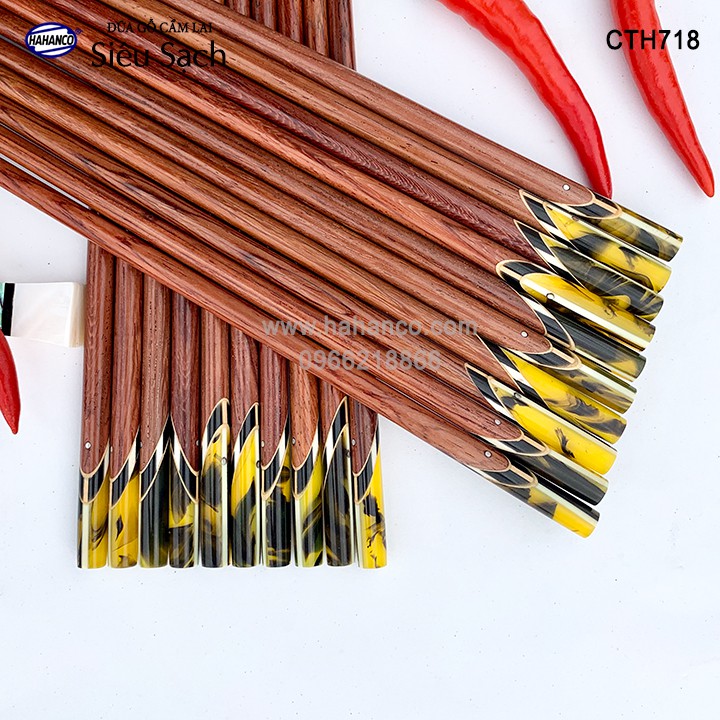 Giới thiệu Đũa gỗ Cẩm - đầu cẩn thạch chéo (10 đôi/Hộp) đầu vân kẻ vàng đen ❤️FREESHIP đơn > 50k❤️CTH718 - HAHANCO