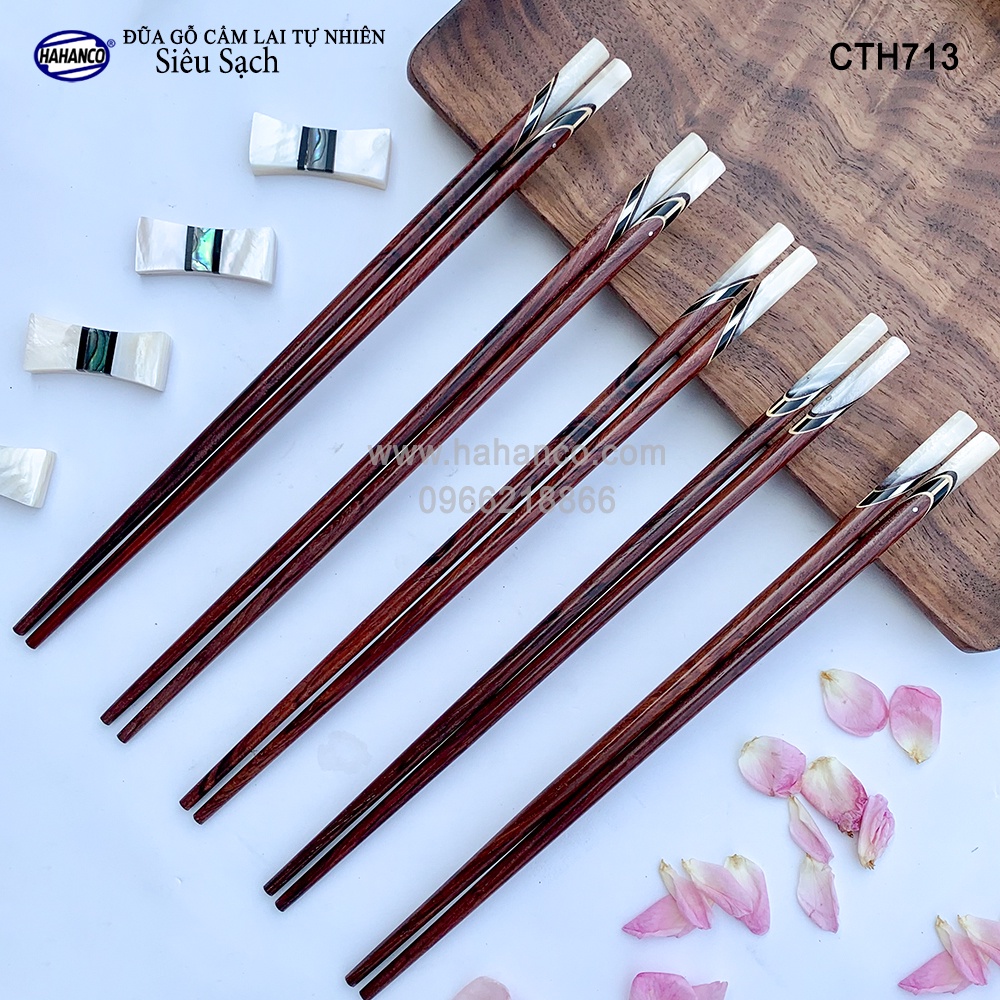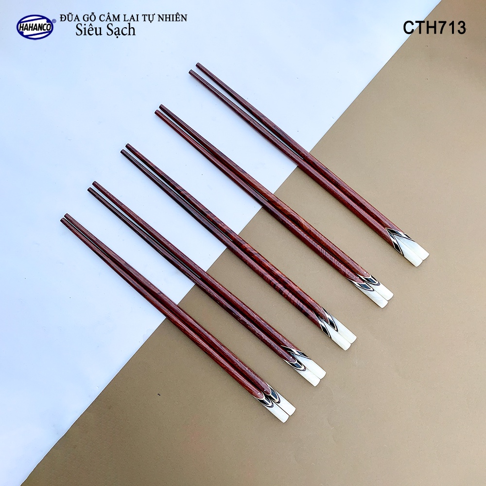 Giới thiệu Đũa Gỗ Cẩm Lai Đầu Cẩn Thạch Chéo Đủ Mẫu HAHANCO (10 Đôi) Kháng Khuẩn Siêu Sạch
