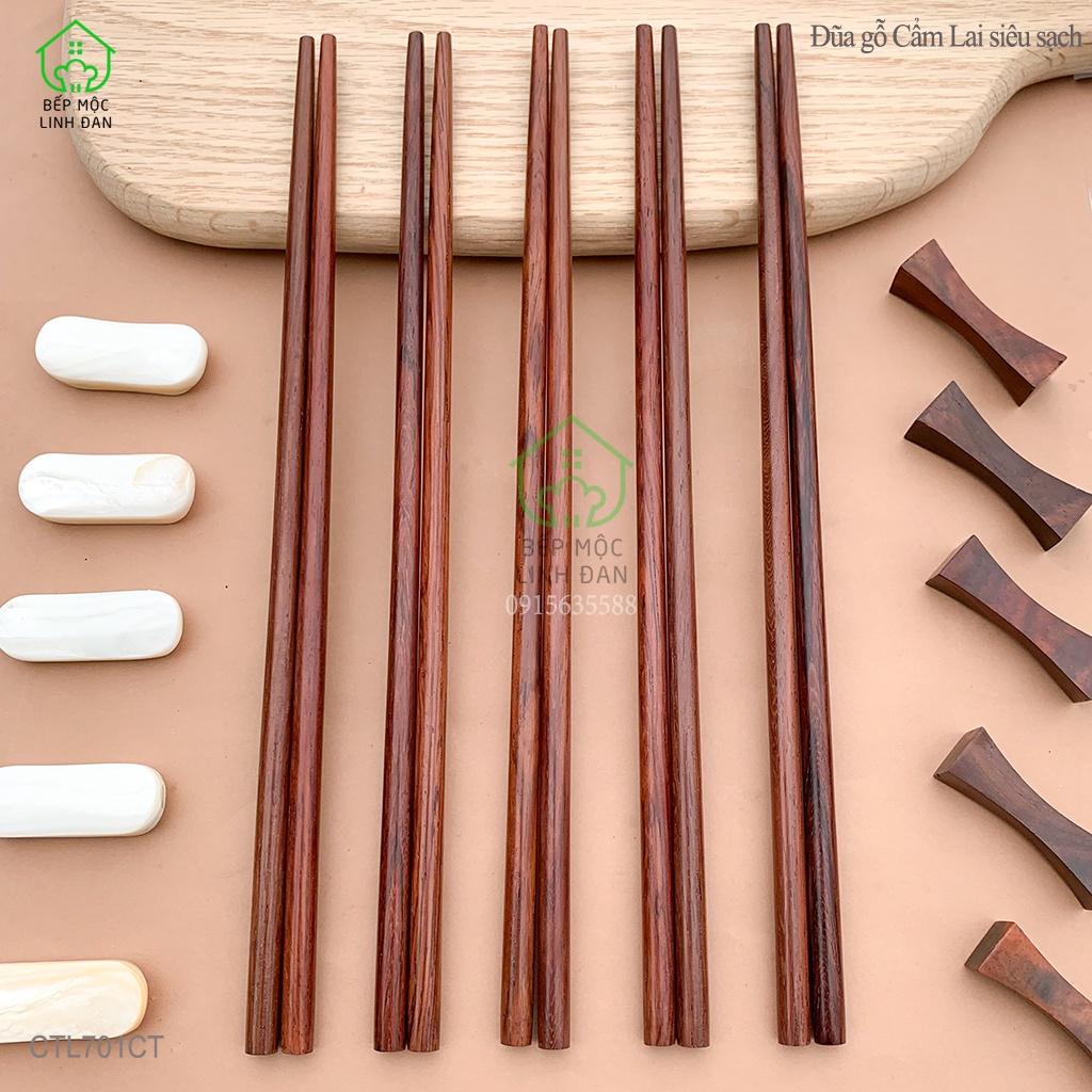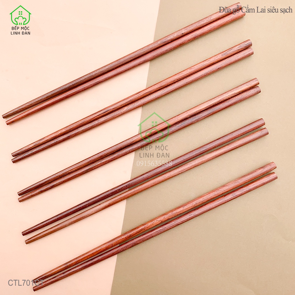 Nhà cửa & Đời sống > Dụng cụ nhà bếp > Cây vét bột & đồ gắp thức ăn || Đũa gỗ Cẩm lai tự nhiên siêu sạch, vân đẹp - Bộ 05 đôi tròn (CTL701CT-05)Còn hàng