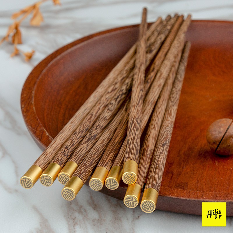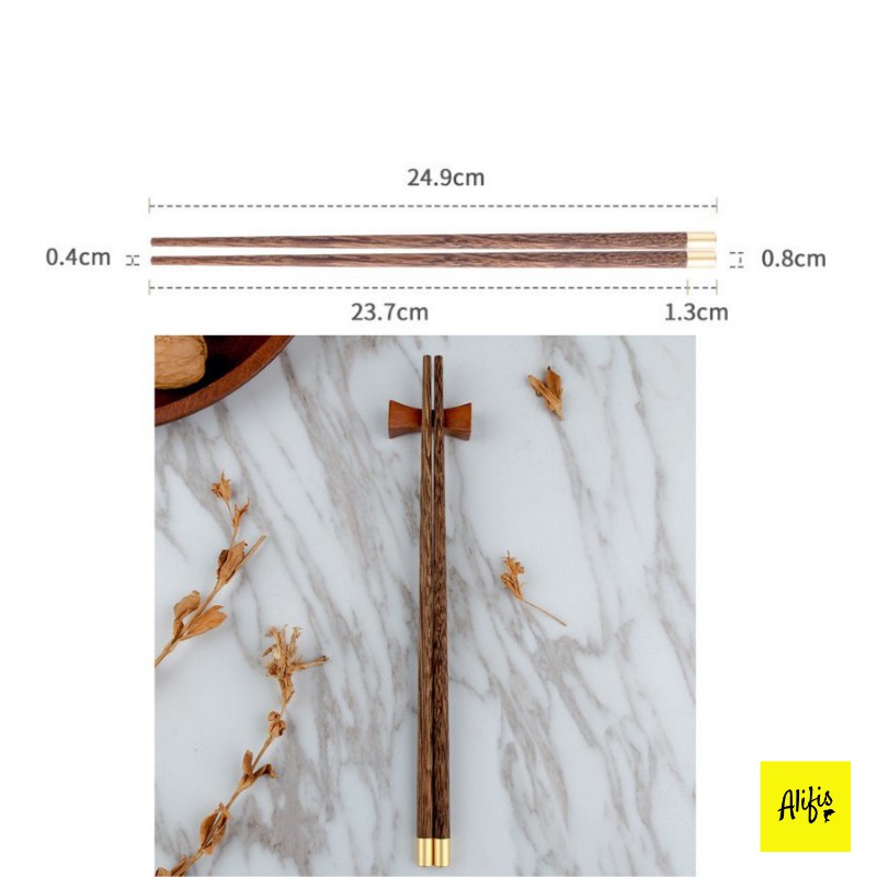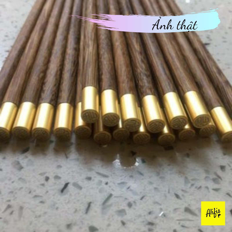 🍀 Sản phẩm: Đũa gỗ, đũa gỗ cánh gà đầu bọc inox mạ vàng phong cách Nhật Bản – phụ kiện bàn ăn
