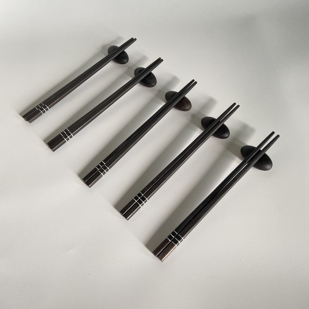 Đũa gỗ Mun vuông 21,5cm - 3 vạch trai ( 5 đôi /Túi) - Đũa gỗ tự nhiên cao cấp - Bộ 5 gác đũa Mun sang trọng