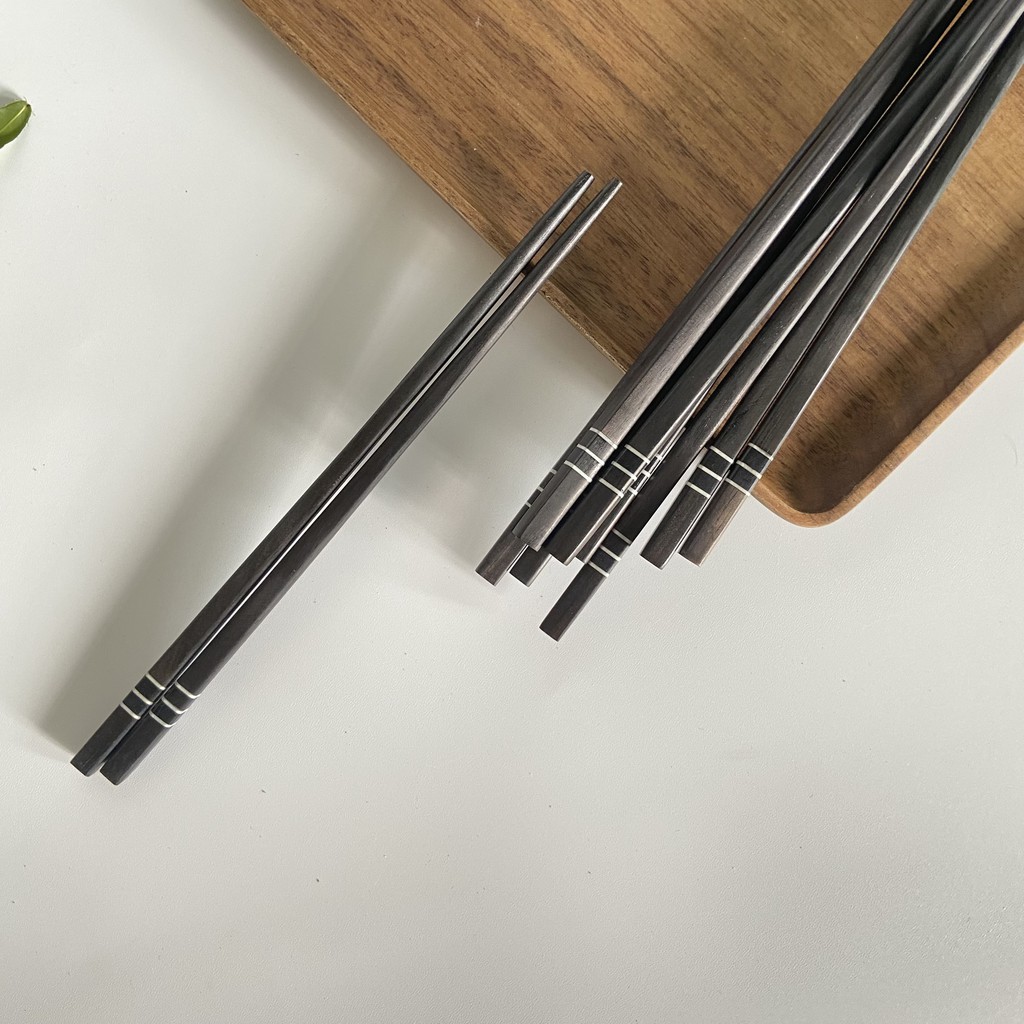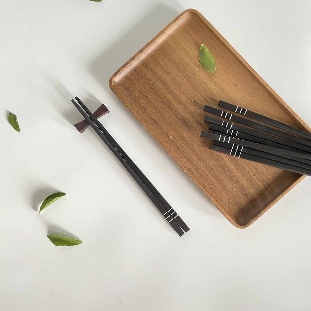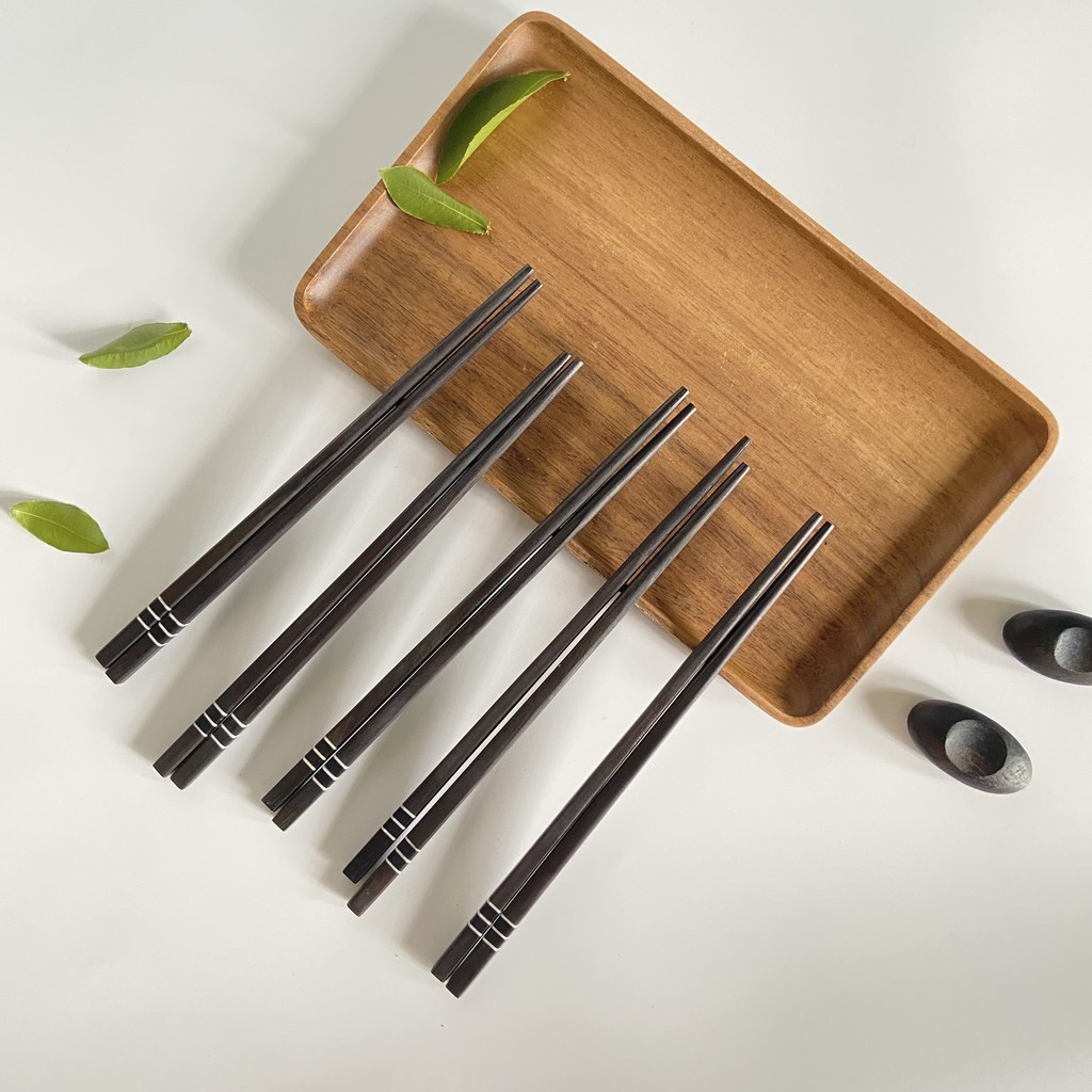 Nhà cửa & Đời sống > Bộ đồ bàn ăn > Bộ dao kéo || Đũa gỗ Mun vuông 21,5cm - 3 vạch trai ( 5 đôi /Túi) - Đũa gỗ tự nhiên cao cấp - Bộ 5 gác đũa Mun sang trọngCòn hàng
