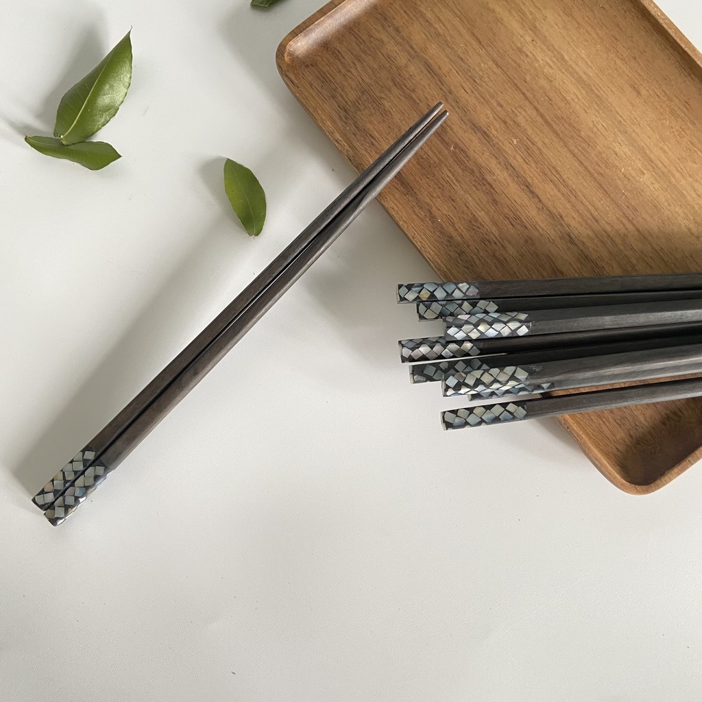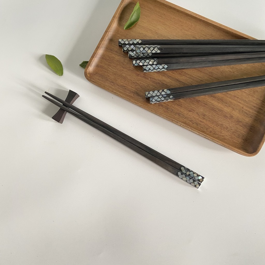 Nhà cửa & Đời sống > Bộ đồ bàn ăn > Bộ dao kéo || Đũa gỗ Mun vuông 23cm - Thân trám xà cừ ( 5 đôi /Túi) - Đũa gỗ tự nhiên cao cấp , Bộ 5 Gác đũa Mun Mỹ Nghệ MartCòn hàng