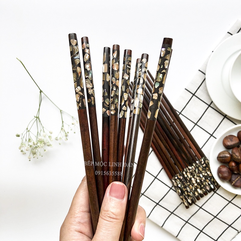 [Mã BMBAU50 giảm 10% đơn 99k] Đũa gỗ trắc cẩn vỏ bào ngư Úc siêu sạch (CTL709) Bộ 10 đôi tròn tặng kèm hộp