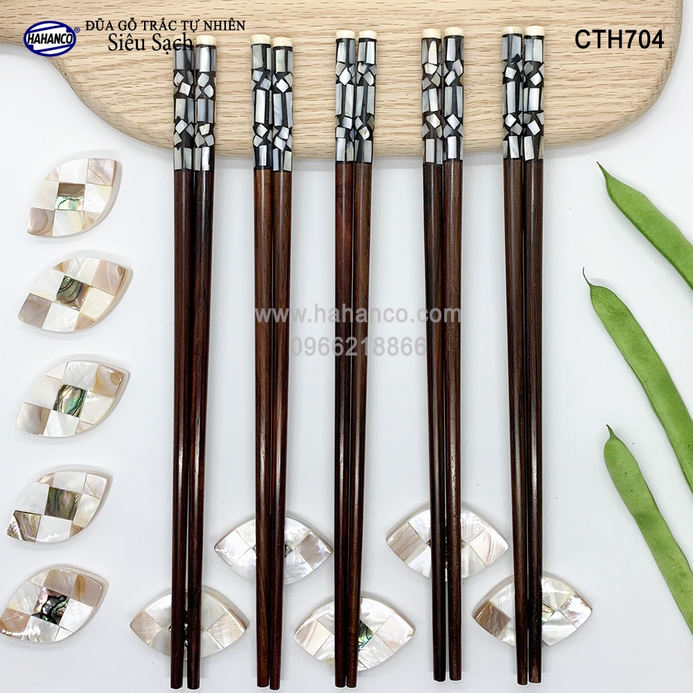 Giới thiệu Đũa Gỗ Trắc Đầu Cẩn Xà Cừ Hoa Văn HAHANCO (10 đôi) Kháng Khuẩn Siêu Sạch - CTH704
