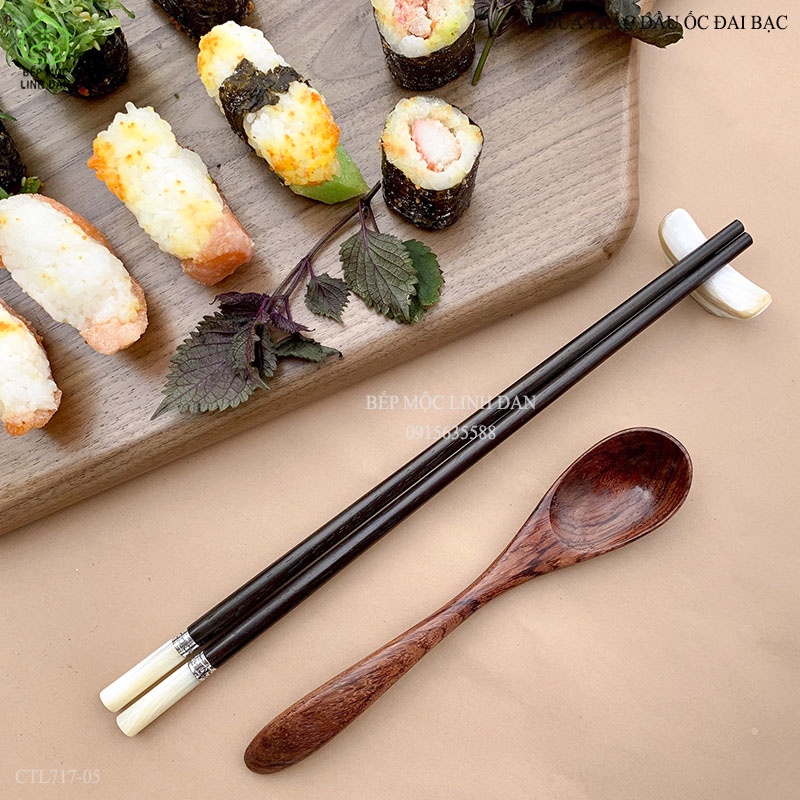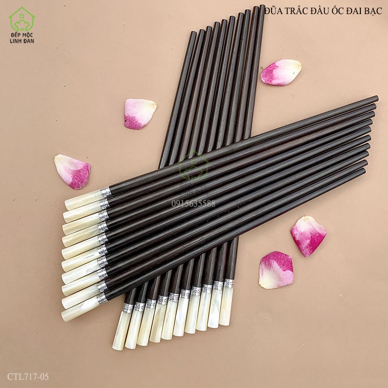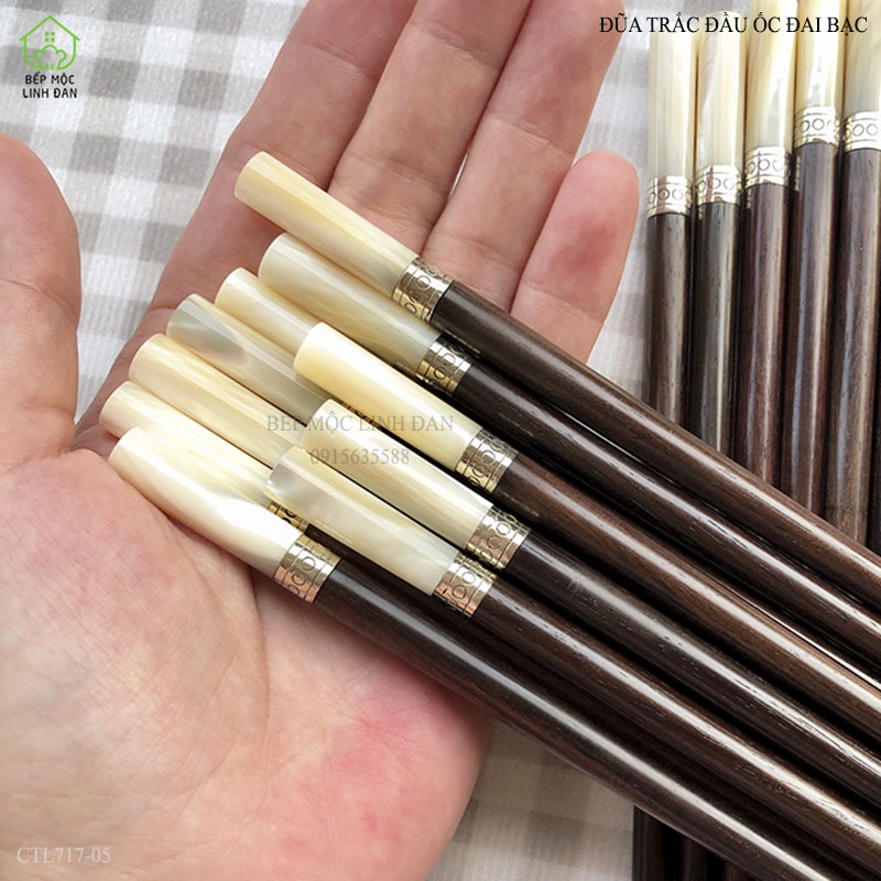 Giới thiệu [Mã BMBAU300 giảm 10% đơn 499K] Đũa gỗ trắc đầu ốc biển NewZealand đai bạc_HÀNG SIÊU SANG_Bộ 05 đôi tròn [CTL717-05]