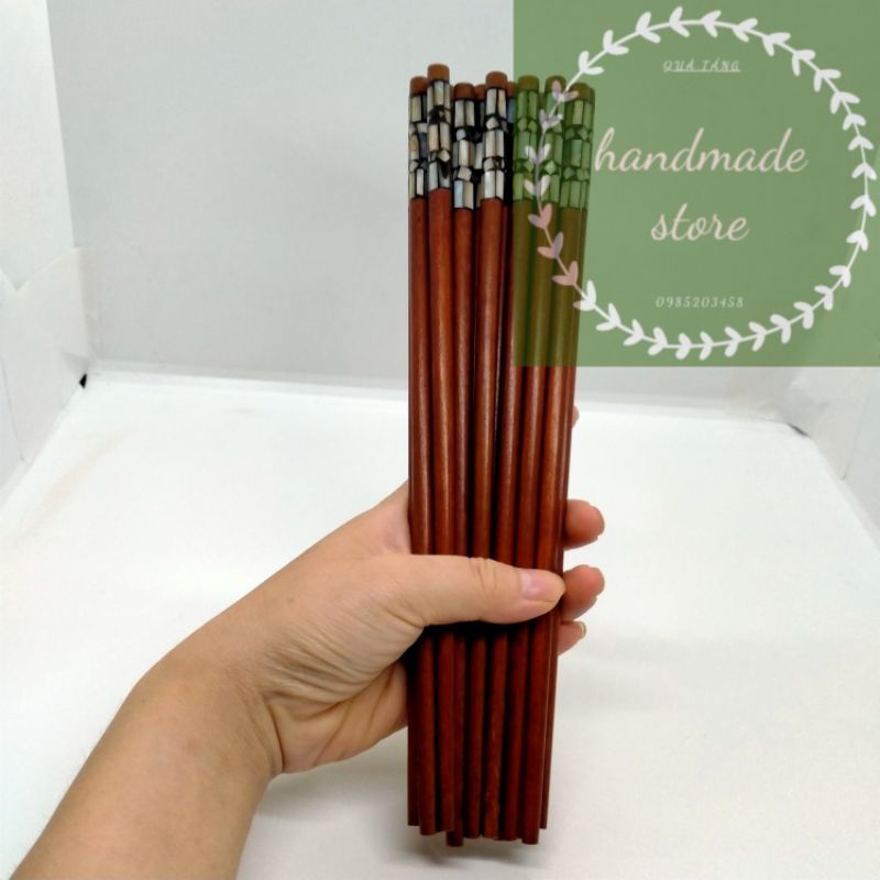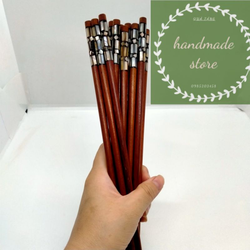 Nhà cửa & Đời sống > Dụng cụ nhà bếp > Cây vét bột & đồ gắp thức ăn || Đũa gỗ trắc đầu tròn khảm đầu trai cao cấp ( 10 đôi)Còn hàng