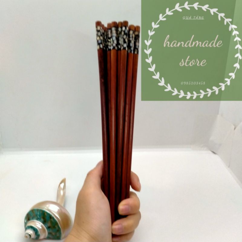 Nhà cửa & Đời sống > Dụng cụ nhà bếp > Cây vét bột & đồ gắp thức ăn || Đũa gỗ trắc đầu tròn khảm trai cao cấp (10đôi) - hàng VIỆT NAMCòn hàng