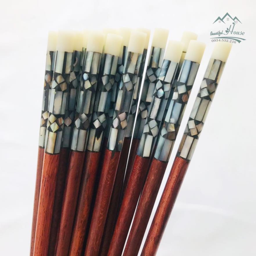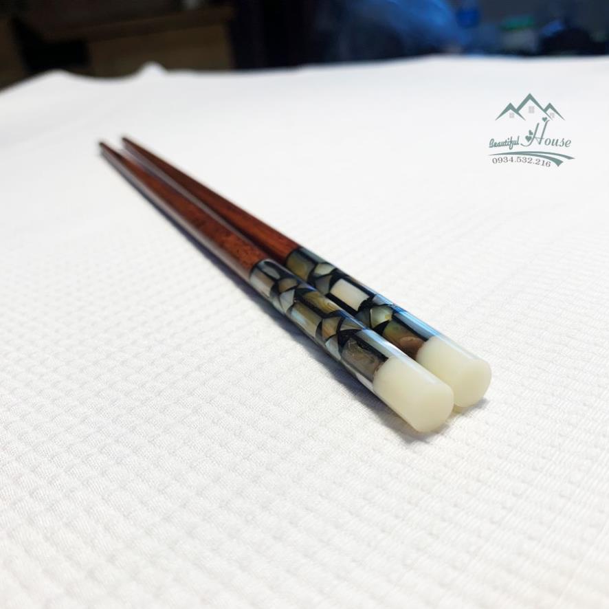 Đũa Gỗ Trắc [ ĐỂ MỘC] Đầu Khảm Trai - Chống Mốc, Tự Nhiên Không Chất Bảo Quản