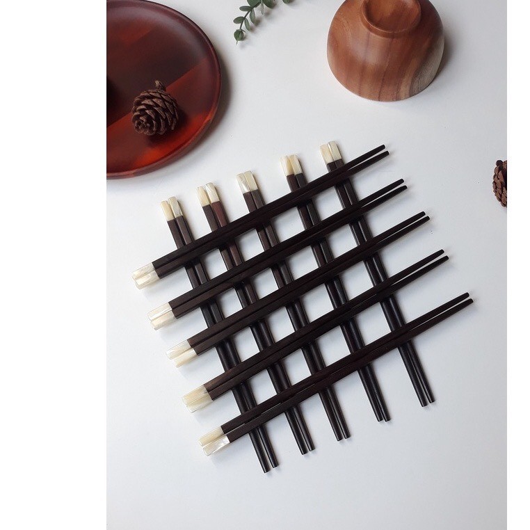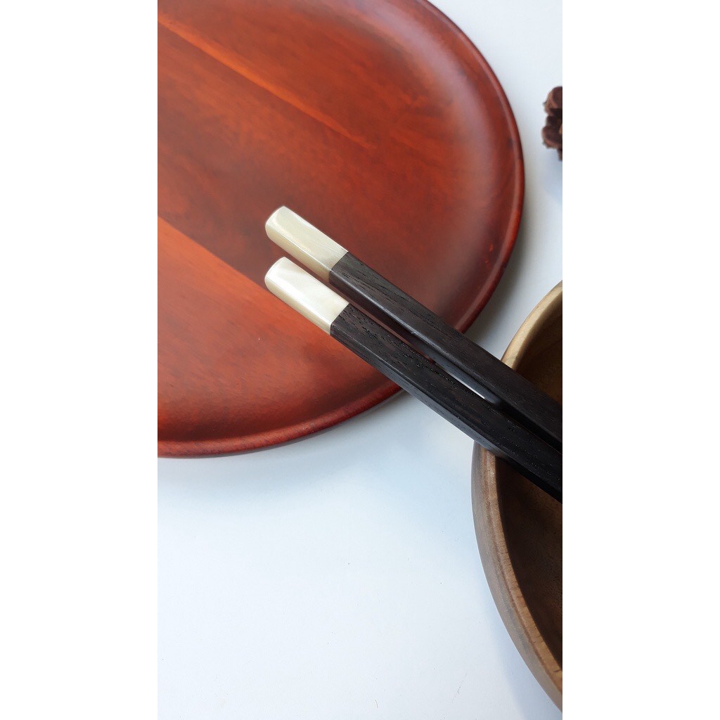 Đũa gỗ Trắc đen vuông 26cm gắn ốc ( 5 đôi /Túi) - Đũa gỗ tự nhiên cao cấp
