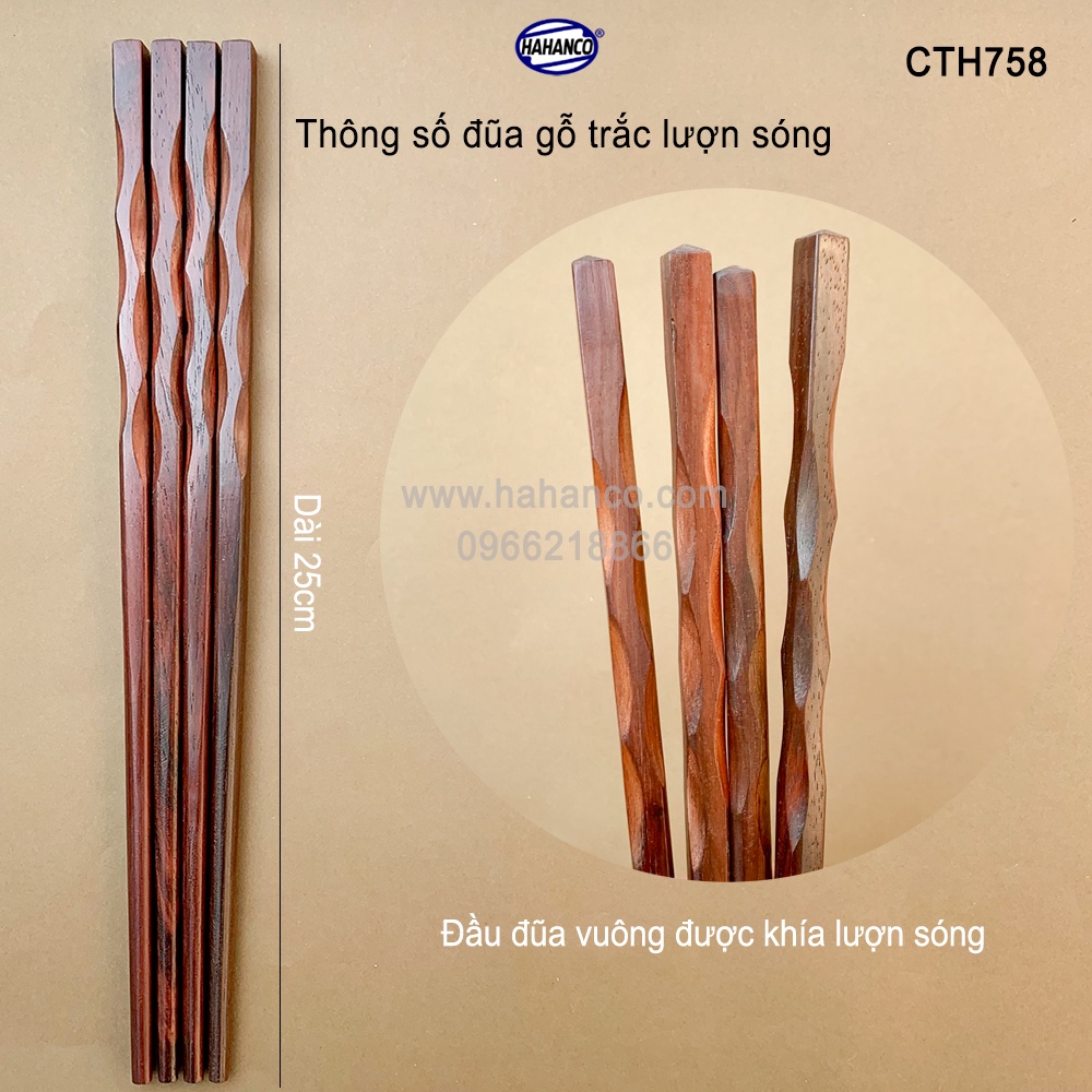 Giới thiệu Đũa gỗ Trắc siêu sạch - CTH758- Gỗ trắc lượn sóng (Hộp 10 Đôi) Chopstick of HAHANCO