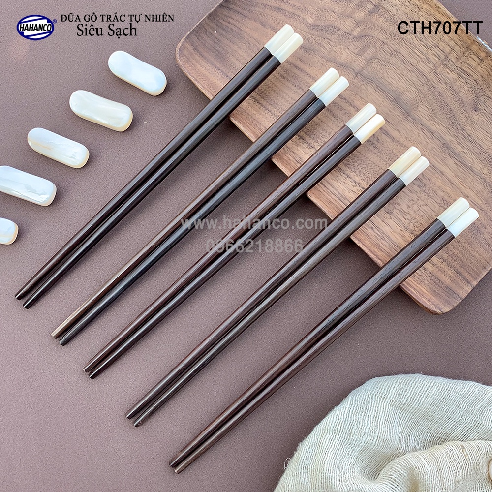 Đũa gỗ Trắc tròn đầu xà cừ trai trắng (10 đôi/hộp) đũa siêu sạch (CTH707TT) HAHANCO