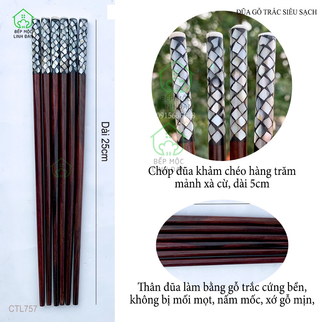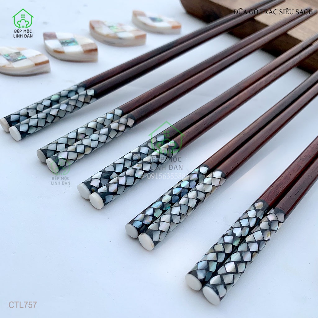 Giới thiệu [Mã BMBAU50 giảm 10% đơn 99k] Đũa gỗ trắc tự nhiên siêu sạch đầu cẩn xà cừ - Bộ 05 đôi tròn (CTL757-05)
