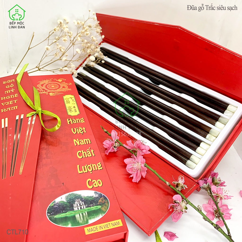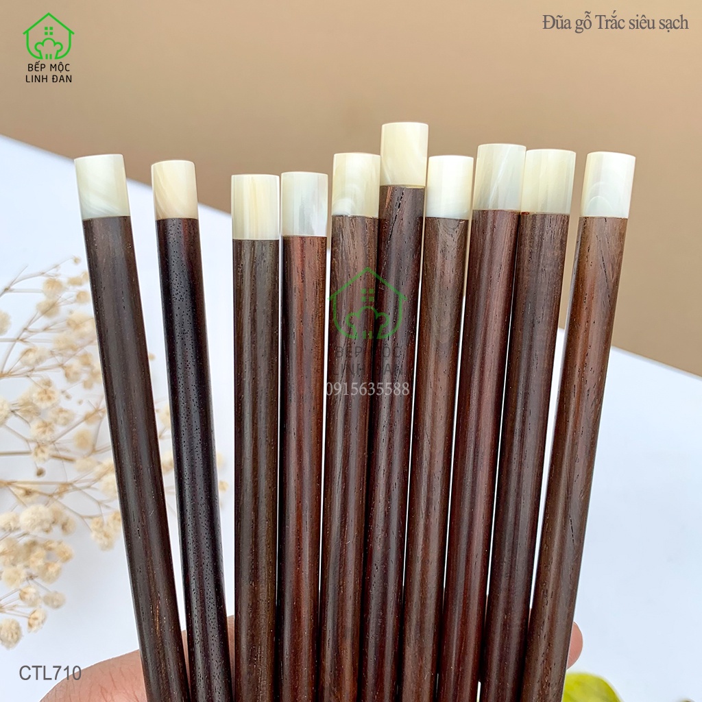 Giới thiệu [Mã BMBAU50 giảm 10% đơn 99k] Đũa gỗ Trắc tự nhiên siêu sạch đầu cẩn ốc biển 1cm_Bộ 10 đôi tròn tặng hộp [CTL710]