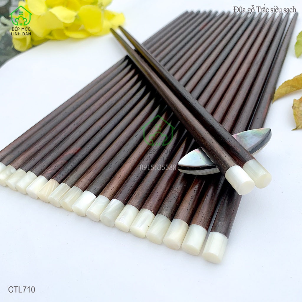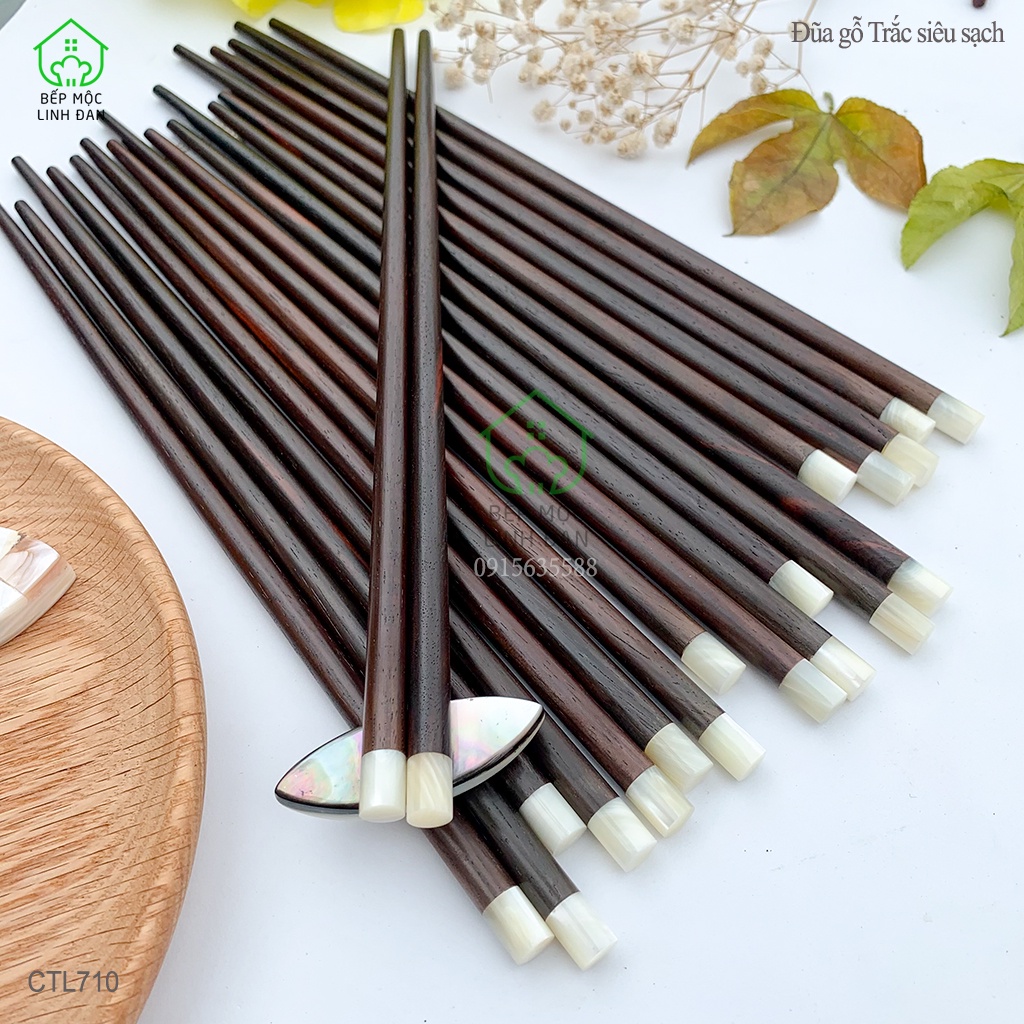 [Mã BMBAU50 giảm 10% đơn 99k] Đũa gỗ Trắc tự nhiên siêu sạch đầu cẩn ốc biển 1cm_Bộ 10 đôi tròn tặng hộp [CTL710]