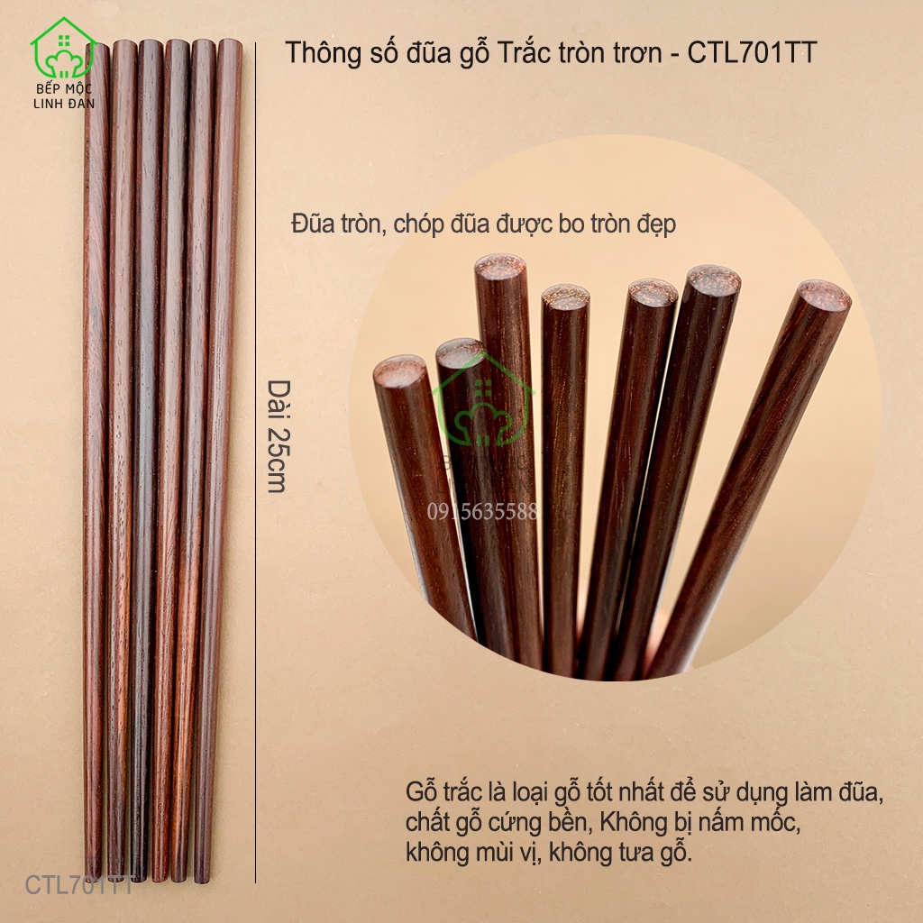 Giới thiệu Đũa gỗ Trắc tự nhiên Việt Nam siêu sạch - Bộ 10 đôi tròn [CTL701TT]