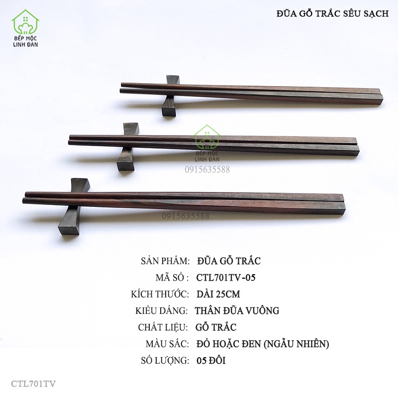 Giới thiệu [Mã BMBAU50 giảm 10% đơn 99k] Đũa gỗ trắc tự nhiên Việt Nam để mộc siêu sạch_Bộ 05 đôi vuông (CTL701TV-05)