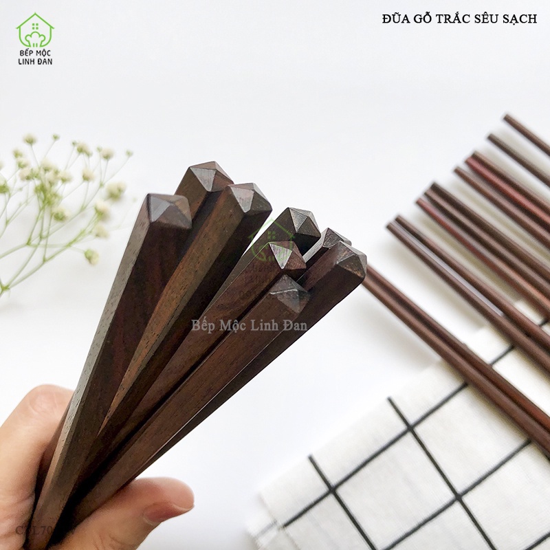 ĐŨA TRẮC TỰ NHIÊN SIÊU SẠCHĐây là bộ đũa được làm từ gỗ trắc tự nhiên 100% để mộc, chọn lọc toàn bộ thớ dọc nên thân đũa cứng, ít cong vênh, chống gãy, không bị mốc, dùng lâu không bị mủn đầu, xước dăm.