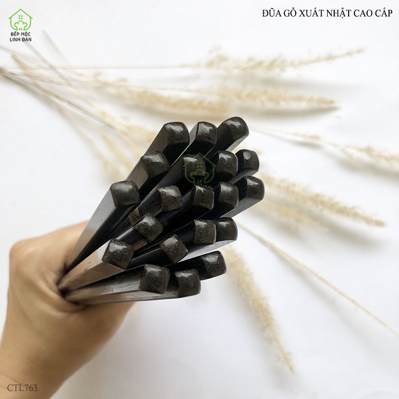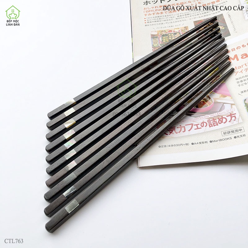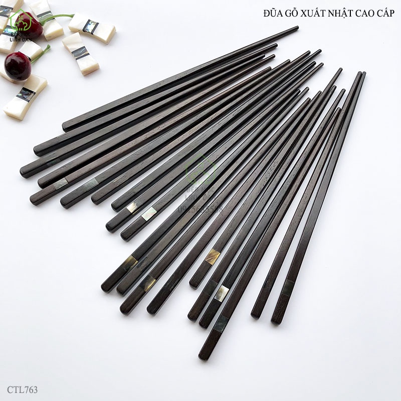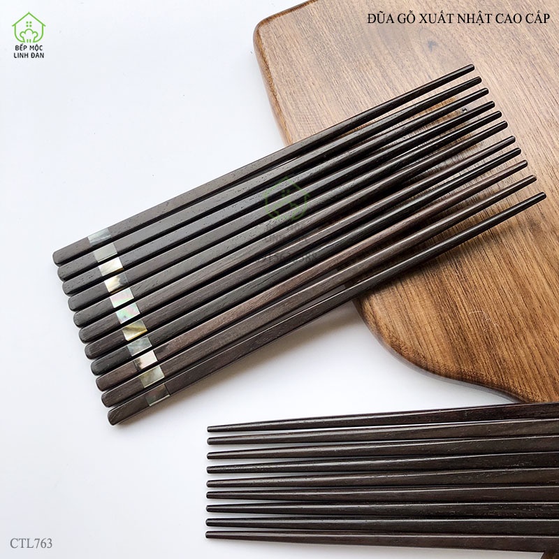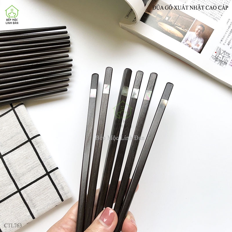 Giới thiệu [Mã BMBAU50 giảm 10% đơn 99k] Đũa gỗ xuất Nhật cao cấp đầu khảm xà cừ 2 cạnh_Bộ 05 đôi [CTL763-05]