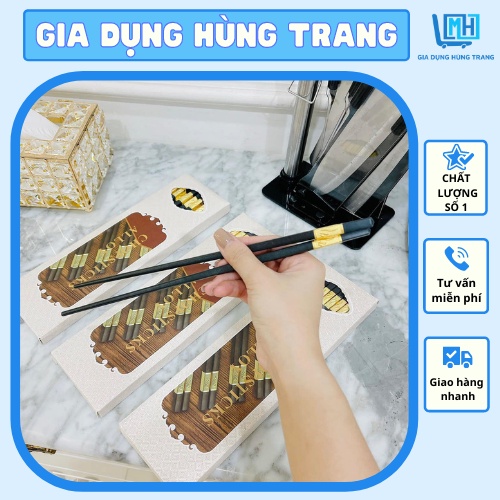 🍜Đũa hợp kim mạ vàng chịu được nhiệt độ lên đến 260 độ C🍜Đũa đẹp lắm ạ, gắp ko trơn tí nào mà mùa nồm ko sợ mốc meo 👍🏻.