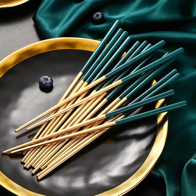 Đũa inox 304 cao cấp,đen đầu vàng, phong cách Nhật Bản,chống trơn trượt, không oxi hoá