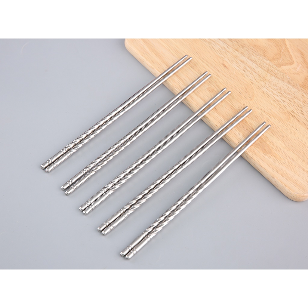 Đũa inox 304 cao cấp - Đũa ăn cơm inox 304 hộp 5 đôi- Đũa inox xoắn được làm bằng inox, sáng bóng, không gỉ dùng trong việc ăn cơm, nấu ăn, gắp các loại thực phẩm, ... tiện lợi và sạch sẽ, an toàn, sử dụng được bền lâu