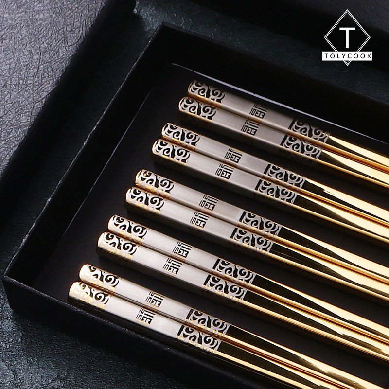 Đũa Inox 304 nhật bản chống trơn trượt cao cấp mạ vàng mạ bạc sang trọng dùng trong gia đình